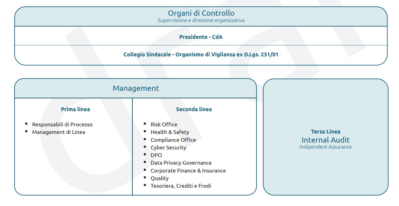 Durante l’iter di gestione, gli elementi essenziali della Segnalazione potranno essere condivisi dal Comitato, in funzione dell’oggetto e delle specifiche competenze in materia, con l’Organismo di Vigilanza, il Collegio Sindacale ed ove ritenuto opportuno con il Vertice Aziendale.